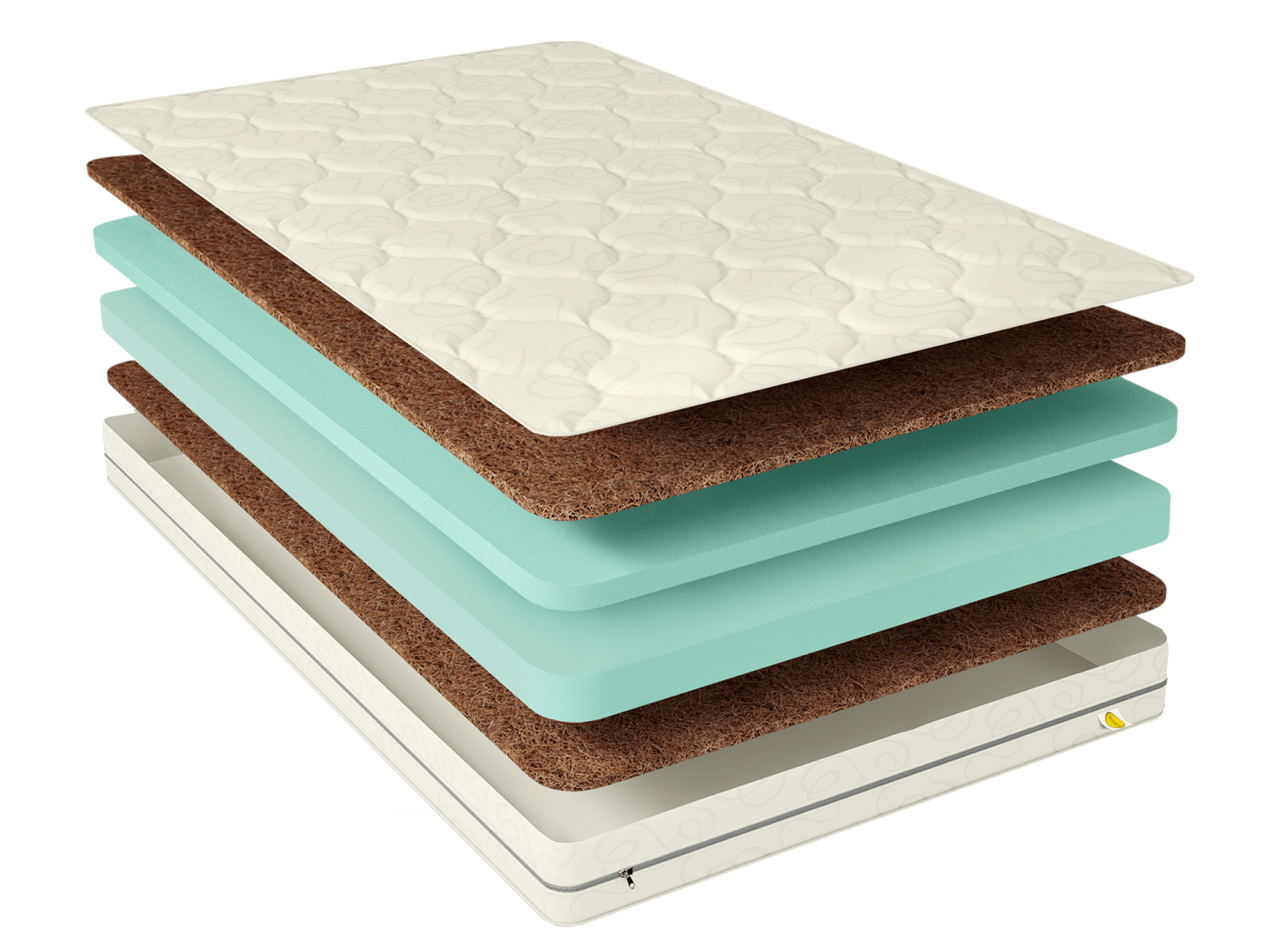 Матрас Mix Cocos с одинаковыми сторонами жесткости. Обе стороны умеренно жесткие. Общая высота матраса 10 см. Матрас является беспружинным, основой служит экологически чистый материал средней жесткости искусственный латекс высотой 8 см. С каждой стороны добавлен слой латексированной кокосовой койры толщиной 1 см, придающий дополнительную жесткость и долговечность матрасу.