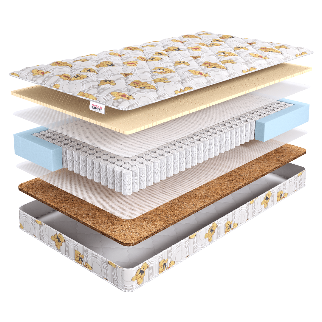 Детский матрас DREAMEXPERT Kinder Latex TFK – это идеальный выбор для комфортного и здорового сна вашего малыша. Уникальное сочетание натурального латекса, латексированной кокосовой койры и независимого пружинного блока обеспечивает матрасу оптимальную высоту в 18 см и необходимую жесткость. Сторона матраса с латексированной койрой обладает высокой жесткостью и способствует правильному формированию осанки ребенка. Сторона с натуральным латексом обеспечивает жесткость выше средней для комфортного сна. Мягкий чехол матраса с детским рисунком не только защищает его от загрязнений, но и украшает интерьер детской комнаты.