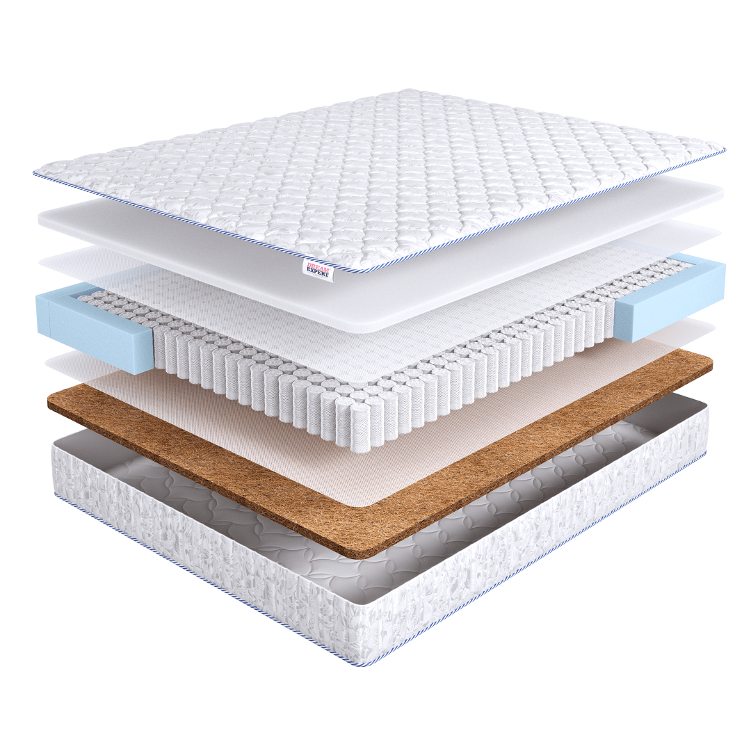 Особенности матраса включают независимый пружинный блок для максимально эффективной поддержки тела спящего. Наполнители матраса в виде холлофайбера и латексированной кокосовой койры обеспечивают разную степень жесткости с каждой стороны - со стороны кокосовой койры матрас более жесткий, а с холлофайбером – немного мягче.
