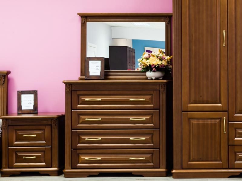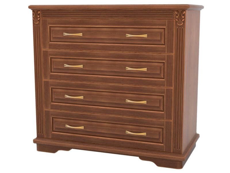 На выбор предлагаются актуальные цвета древесины, в том числе оттенки орех и груша. Купить изделия возможно в стандартной и индивидуальной комплектации. Под заказ изготавливаются комоды с другими параметрами по высоте, с дополнительным ящичком и автодоводчиками закрытия, что несущественно сказывается на цене.