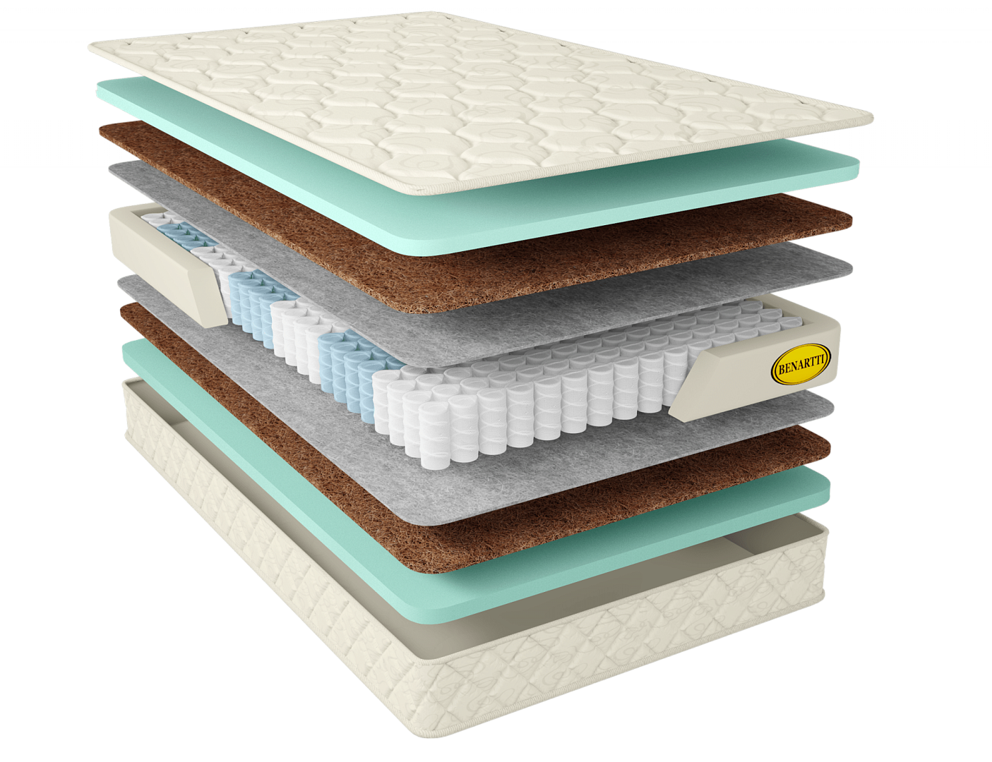 Для дополнительной защиты пружинного блока добавлен изоляционный слой из войлока, разделяющий и защищающий наполнители матраса и пружинный блок. С каждой стороны расположен слой кокосовой койры толщиной 1 см , придающий дополнительную жесткость и долговечность матрасу и поверх слой искусственного латекса высотой 3 см, обладающий анатомическим эффектом и износостойкими свойствами. Чехол матраса, выполнен из хлопкового жаккарда, простеганного на экологически чистом материале Hollcon. Ткань обработана специальной антибактериальной пропиткой SANITIZED (Швеция). Пропитка обеспечивает полное уничтожение плесневых грибков, не дает развиваться микроорганизмам, пылевым клещам и микробам