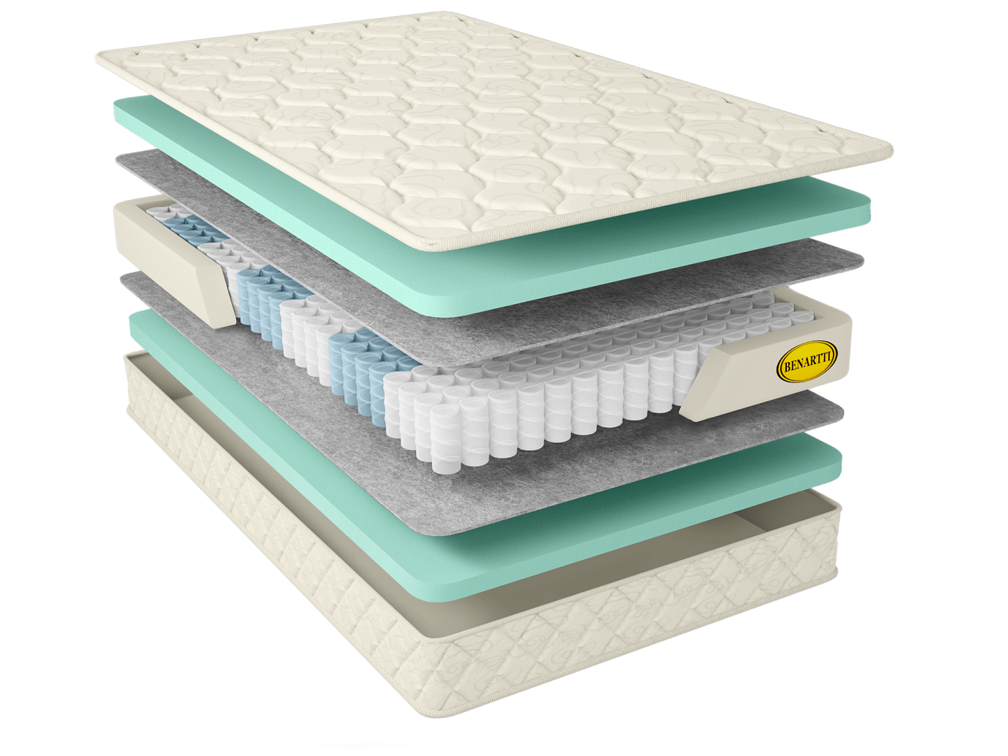 Для дополнительной защиты пружинного блока добавлен изоляционный слой из войлока, разделяющий наполнители матраса и пружины. С каждой стороны расположен слой искусственного латекса высотой 4 см, обладающий анатомическим эффектом и износостойкими свойствами. Чехол матраса, выполнен из хлопкового жаккарда, простеганного на экологически чистом материале Hollcon. Ткань обработана специальной антибактериальной пропиткой SANITIZED (Швеция). Пропитка обеспечивает полное уничтожение плесневых грибков, не дает развиваться микроорганизмам, пылевым клещам и микробам.