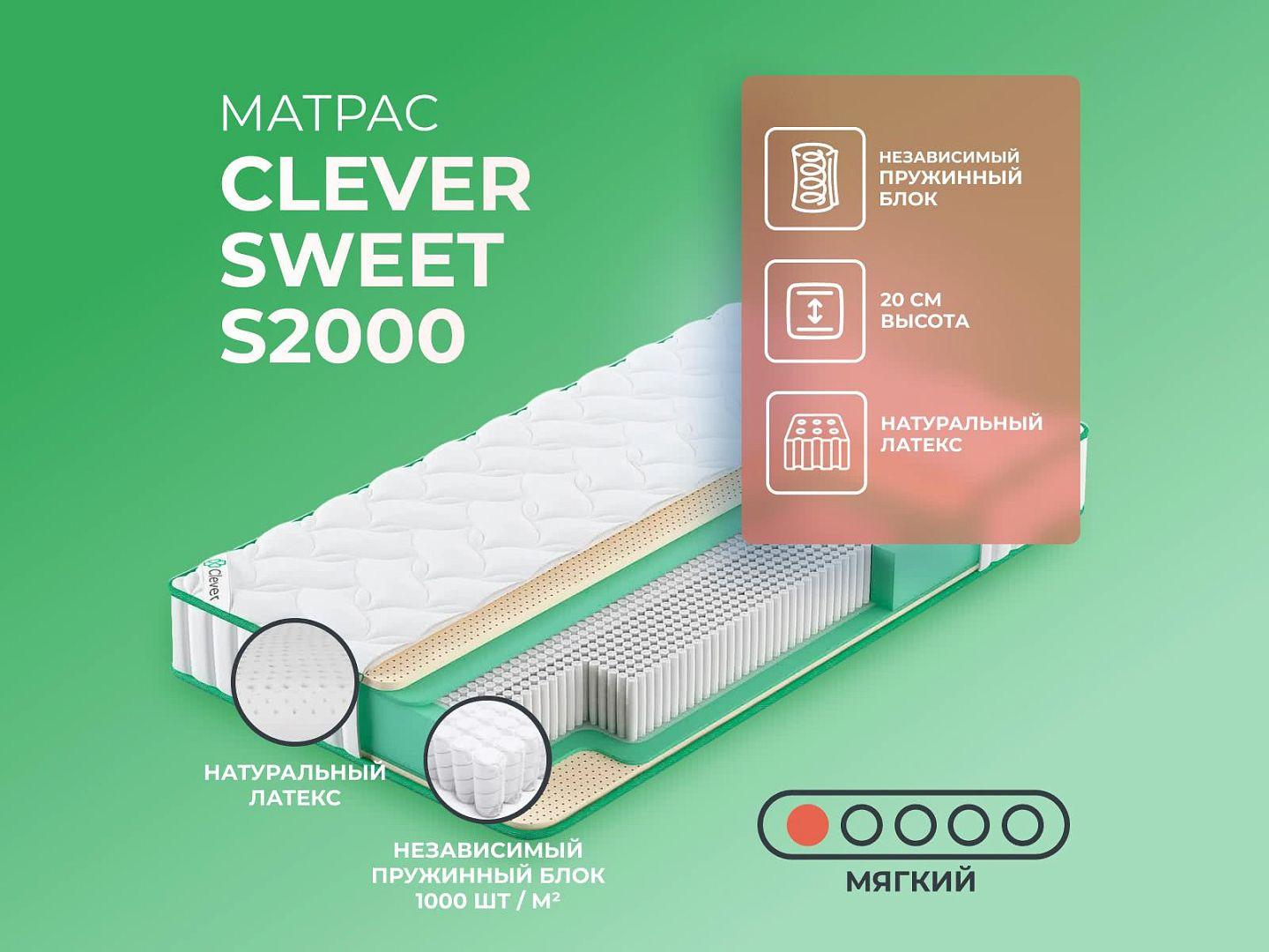 Фабрика Clever получила заслуженную репутацию, благодаря применению новых технологий и безупречному соблюдению стандартов качества. Clever Sweet S2000 — образец продукта с лучшими характеристиками и доступной ценой, матрас создан из дышащих тканей, с эффектом вентиляции.