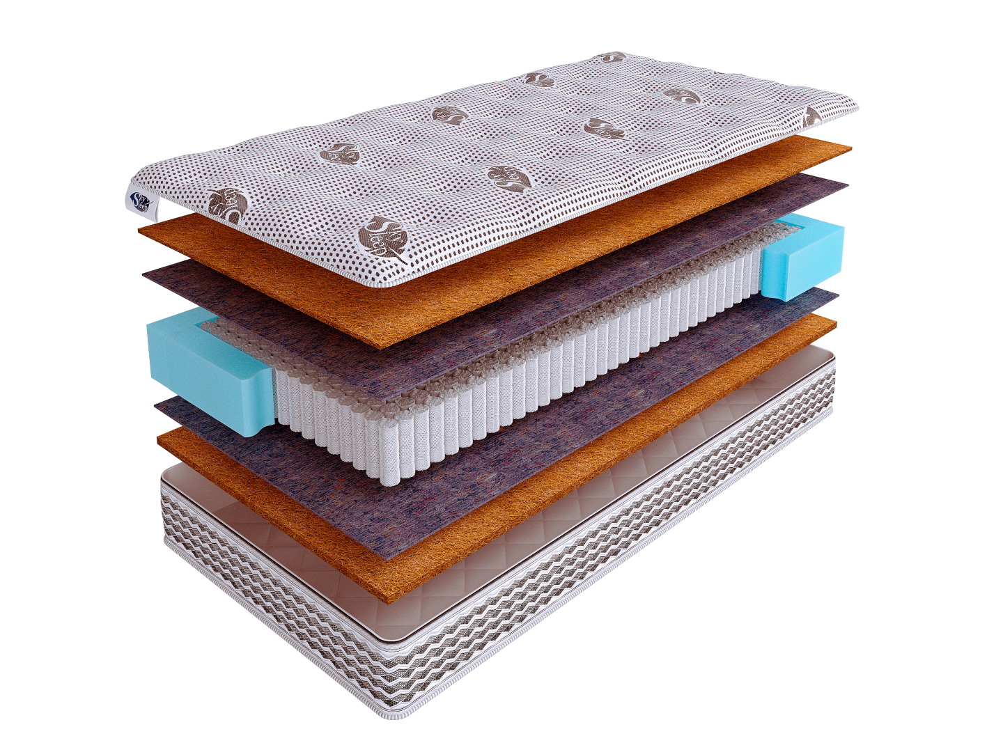 Его основным наполнителем является латексированная кокосовая койра. Это природный материал, обладающий такими качествами, как прочность, упругость и отличная воздухопроницаемость. Слой кокоса расположены по обеим сторонам модели и обеспечивают надежную ортопедическую поддержку для всего тела.