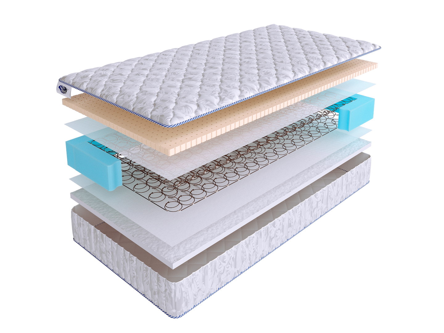 Чехол матраса выполнен из хлопкового жаккарда, простеганного на 100 г. синтепона.