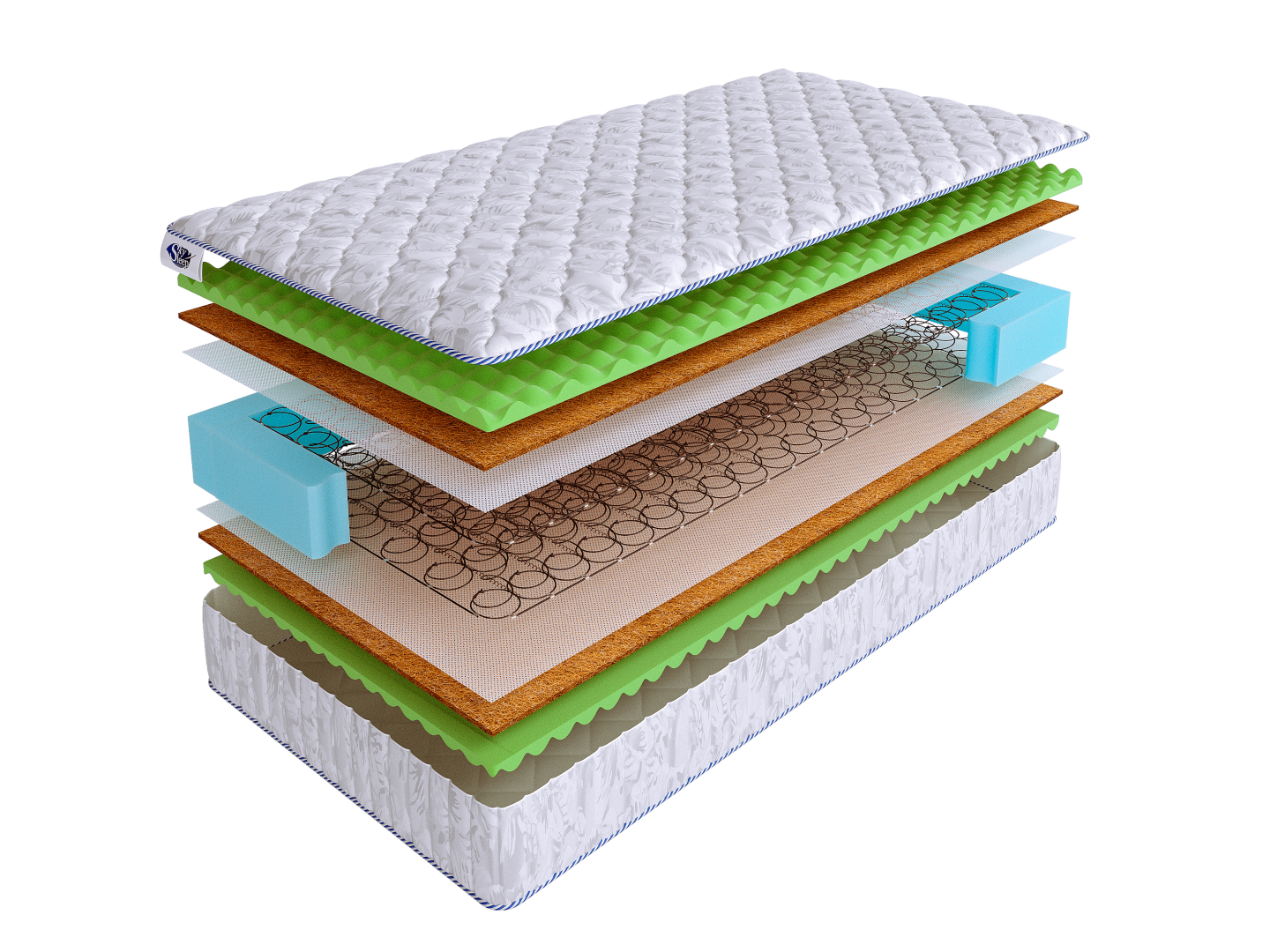 Матрас WAVE SPACE BS с микромассажным эффектом обладает одинаковой умеренно-высокой жесткостью сторон. Он выполнен из экологичных материалов: кокосовой койры и рельефной пены ErgoFoam. Кокосовая койра придает матрасу жесткости и способствует равномерному распределению нагрузки на пружинный блок. Это натуральный материал, обладающий природными бактерицидными свойствами. Он предотвращает появление в матрасе вредных микроорганизмов и помогает сохранять гигиеничность спального места на протяжении долгого времени. Уникальная пена ErgoFoam обладает массажным эффектом. Она улучшает микроциркуляцию крови в организме во время сна. Рельефная поверхность пены обеспечивает расслабление мышечных тканей и делает отдых полноценным и по-настоящему комфортным.
