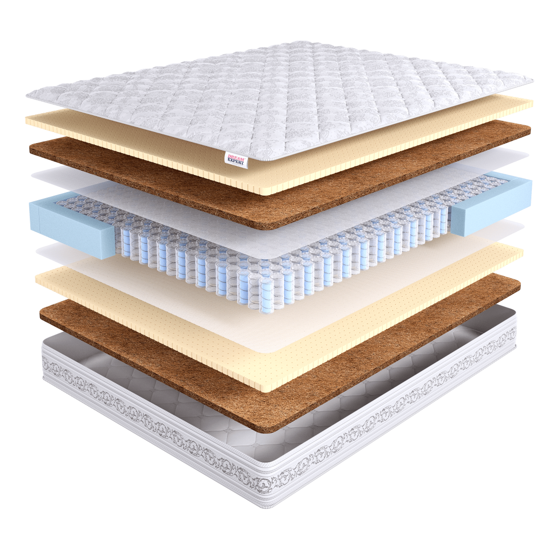 Уникальное сочетание только натуральных наполнителей, таких как натуральный латекс и латексированная кокосовая койра, гарантирует жесткость одинаковой у каждой стороны матраса и уровень жесткости выше среднего. Это позволяет матрасу обеспечить наивысший комфорт и расслабление тела спящего, что особенно важно при избыточном весе или большой разнице в весе партнеров.
